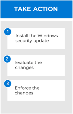 - Phase 2: Review the updated schedule. Start testing the first two mitigation against representative devices from your environment. Start planning for the deployment.